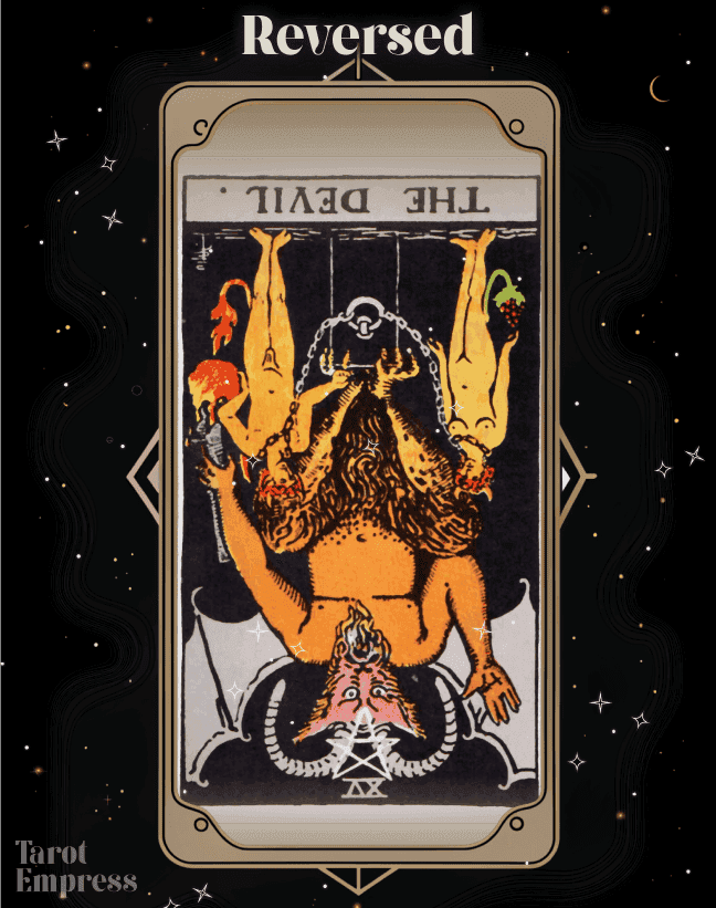 Cultivate Openness: Advocating for adaptability, the reversed Devil advises against rigid thinking patterns. It calls for entertaining unconventional solutions that may provide solutions to initially perplexing questions.